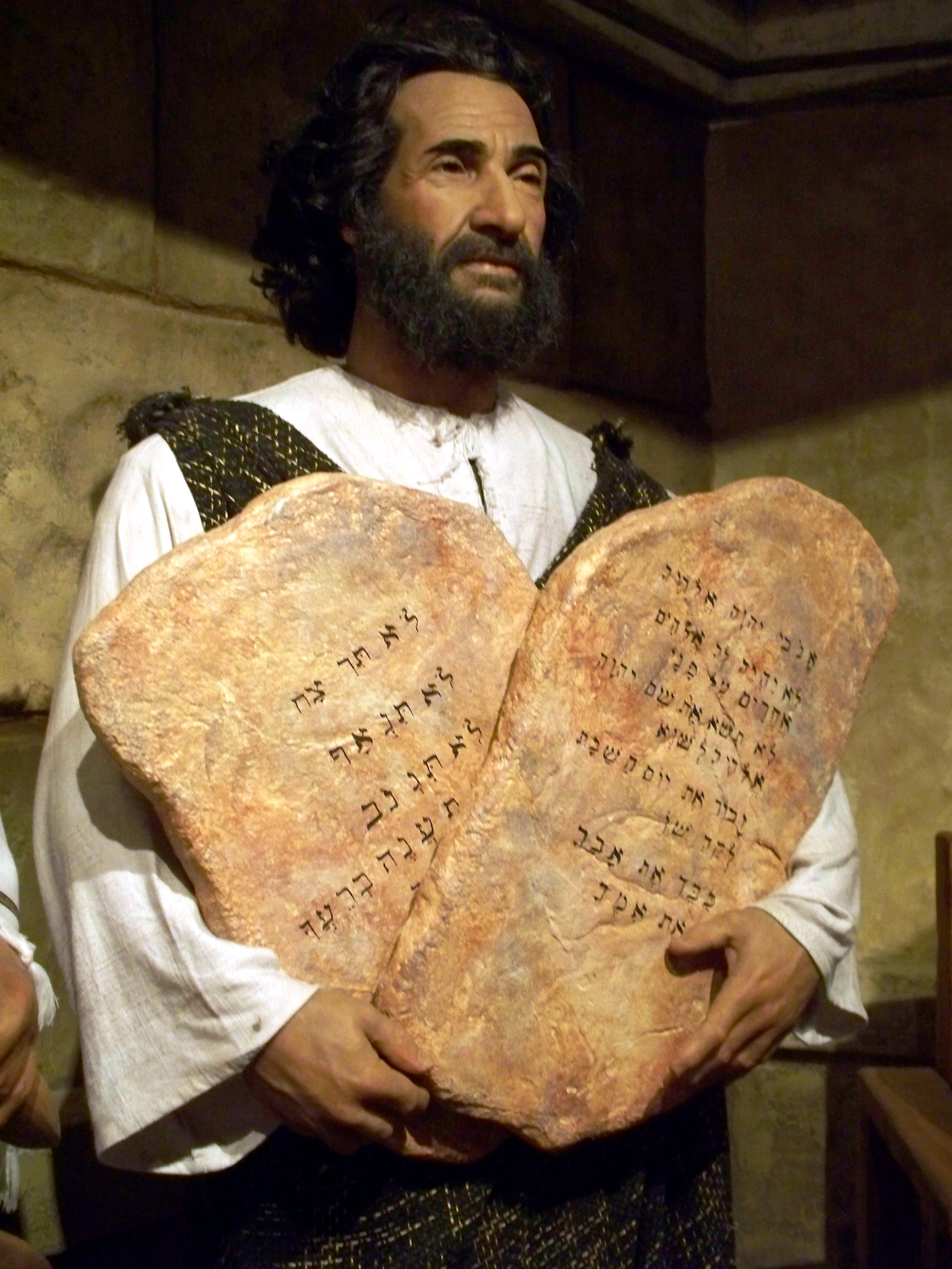 “Y volvió Moisés y descendió del monte, trayendo en su mano las dos tablas del testimonio, las tablas escritas por ambos lados; de uno y otro lado estaban escritas. 16 Y las tablas eran obra de Dios, y la escritura era escritura de Dios grabada sobre las tablas. 17 Cuando oyó Josué el clamor del pueblo que gritaba, dijo a Moisés: Alarido de pelea hay en el campamento. 18 Y él respondió: No es voz de alaridos de fuertes, ni voz de alaridos de débiles; voz de cantar oigo yo. 19 Y aconteció que cuando él llegó al campamento, y vio el becerro y las danzas, ardió la ira de Moisés, y arrojó las tablas de sus manos, y las quebró al pie del monte.” Éxodo 32:15-19